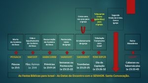 Há, porém, nestas festas (que no original são tratadas como “as datas de encontro com o SENHOR” – não como festas), um significado profético. Nele está descrito todo o Plano da Redenção, para Israel e para a Igreja: